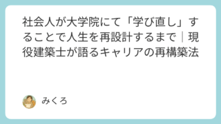 社会人が大学院にて「学び直し」することで人生を再設計するまで|現役建築士が語るキャリアの再構築法