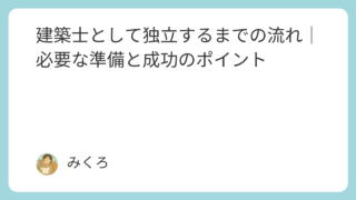 はじめに「建築士として独立したいけれど、何から始めればいいのか分からない」そんな悩みを抱える方は少なくありません。独立には資格だけでなく、資金・経験・人脈・経営力など幅広い要素が必要です。この記事では、建築士が独立するまでの具体的な流れをわ...