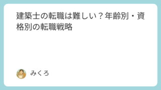 はじめに建築士としてキャリアを積みたいと考える中で、「転職したいけど難しいのでは…」と思う方は少なくありません。建築業界は専門職であるため、一般的な転職市場とは少し勝手が違います。今回は、年齢別・資格別に建築士の転職戦略を整理し、転職を成功...