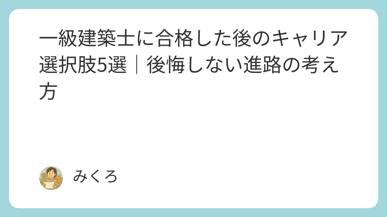 この記事では、一級建築士に合格した後に選ばれやすい5つのキャリア選択肢と、